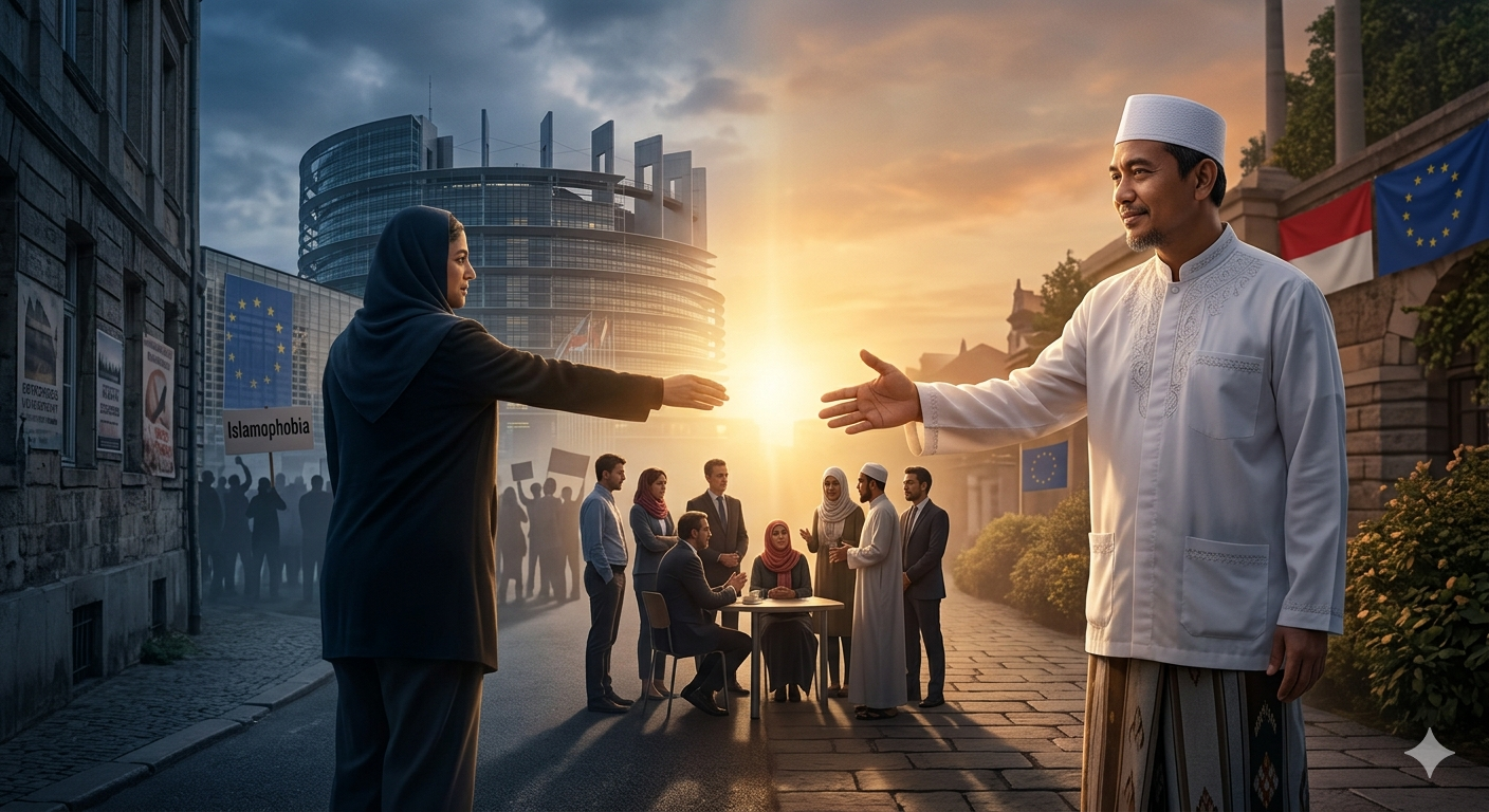 Arif Oegroseno, Duta Besar RI untuk Jerman, dalam pengajian Muhammadiyah memberikan perspektif kunci mengenai akar permasalahan. Ia menjelaskan bahwa di Eropa masih berlaku paradigma “Islam and Europe” bukan “European Islam”—artinya Islam masih dianggap sebagai sesuatu yang asing (alien) dan bukan milik Eropa.
